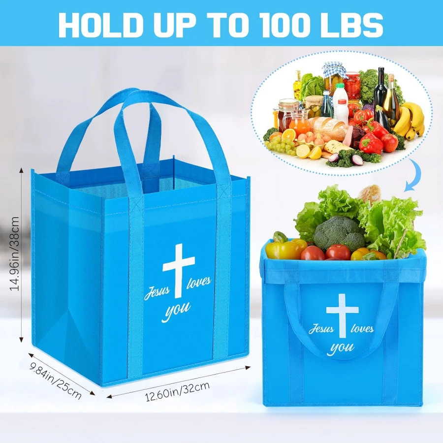 Quality Construction: Our tote bags are made from thick, high-quality non-woven material, reinforced with expertly stitched handles. Their robust construction ensures they can handle heavy loads without tearing or wearing out, providing long-lasting use for all your shopping needs.