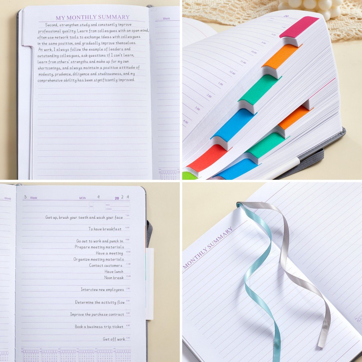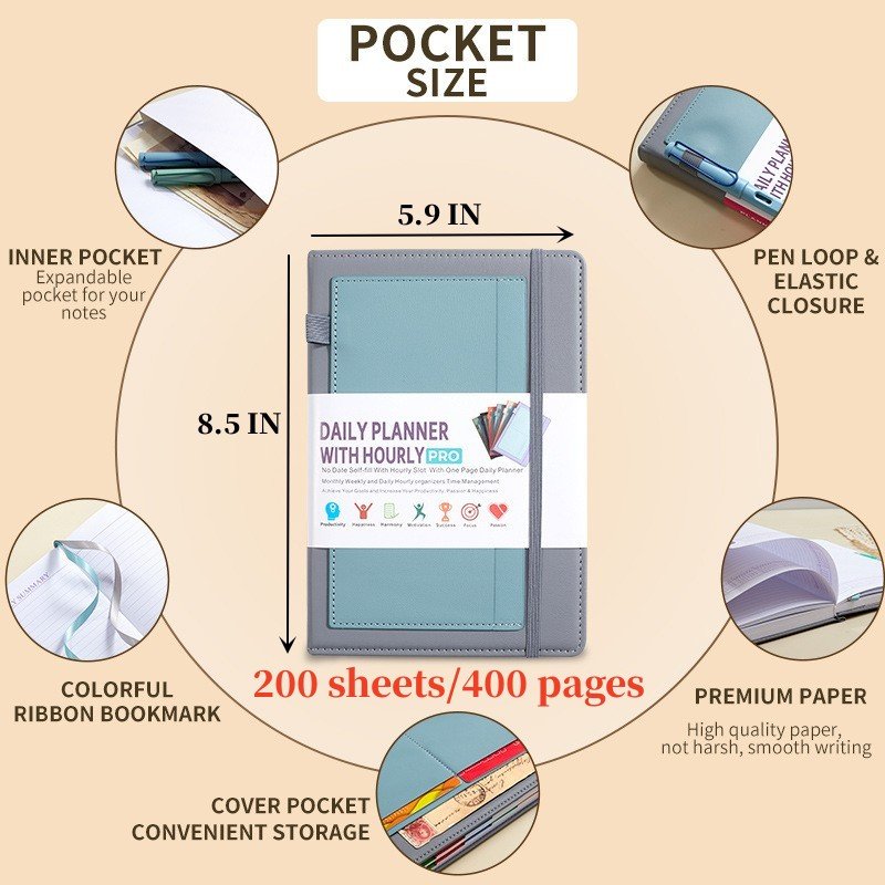 Empowering Goal-Centric Planning: Transform your aspirations into action with this undated daily planner, designed to help you map short- and long-term goals across all life areas. Break down ambitions into actionable steps with monthly, weekly, and daily layouts, creating a clear roadmap to align your schedule with your vision for personal and professional growth.