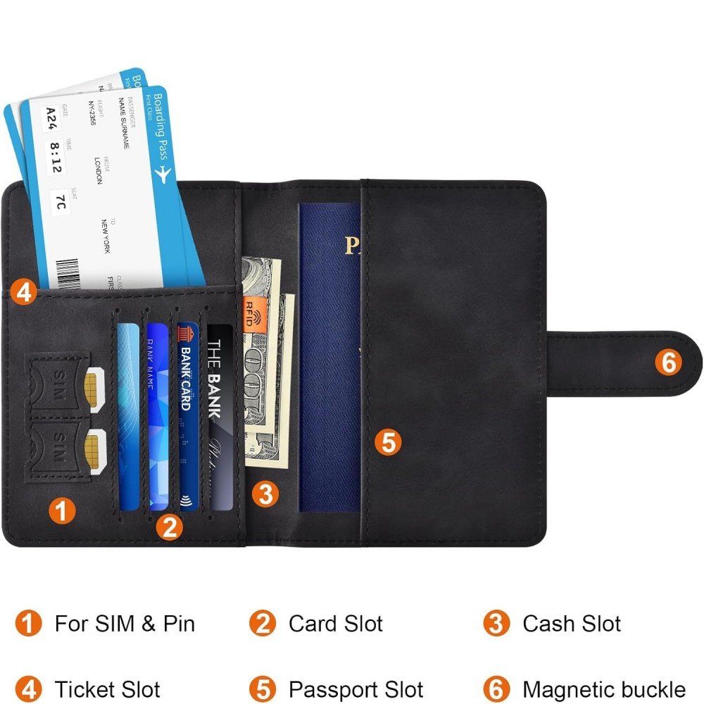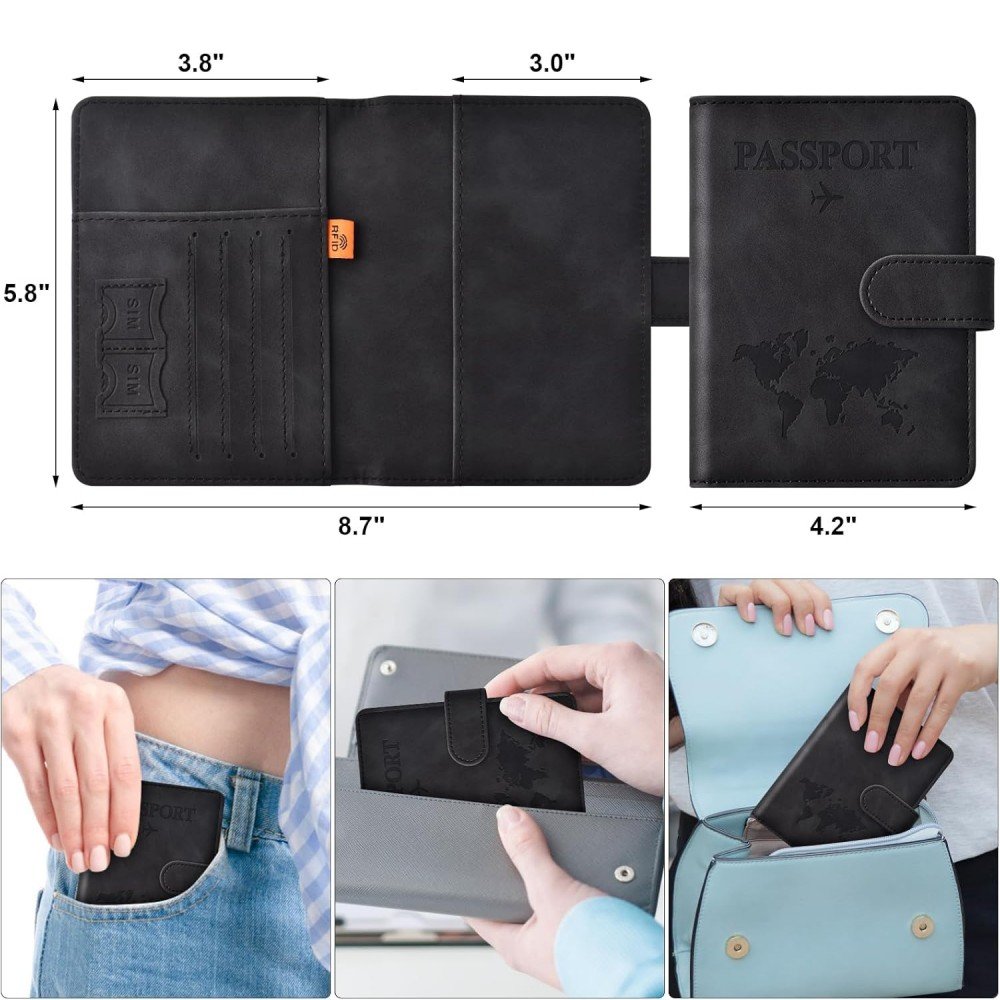 RFID Security & Travel Organization: Equipped with RFID-blocking technology, the wallet protects against digital theft while offering ample storage for passports, cards, and cash. Its clasp-secured interior ensures items stay organized and secure during flights, commutes, or daily errands.