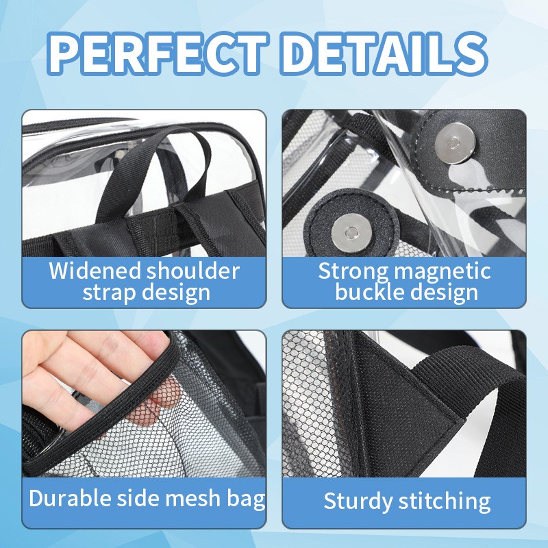 Customizable Options: We offer customization services for our PVC clear backpacks, allowing you to add your own logo or design to make it stand out.This is an ideal option for businesses looking to promote their brand or for individuals who want a unique look.
